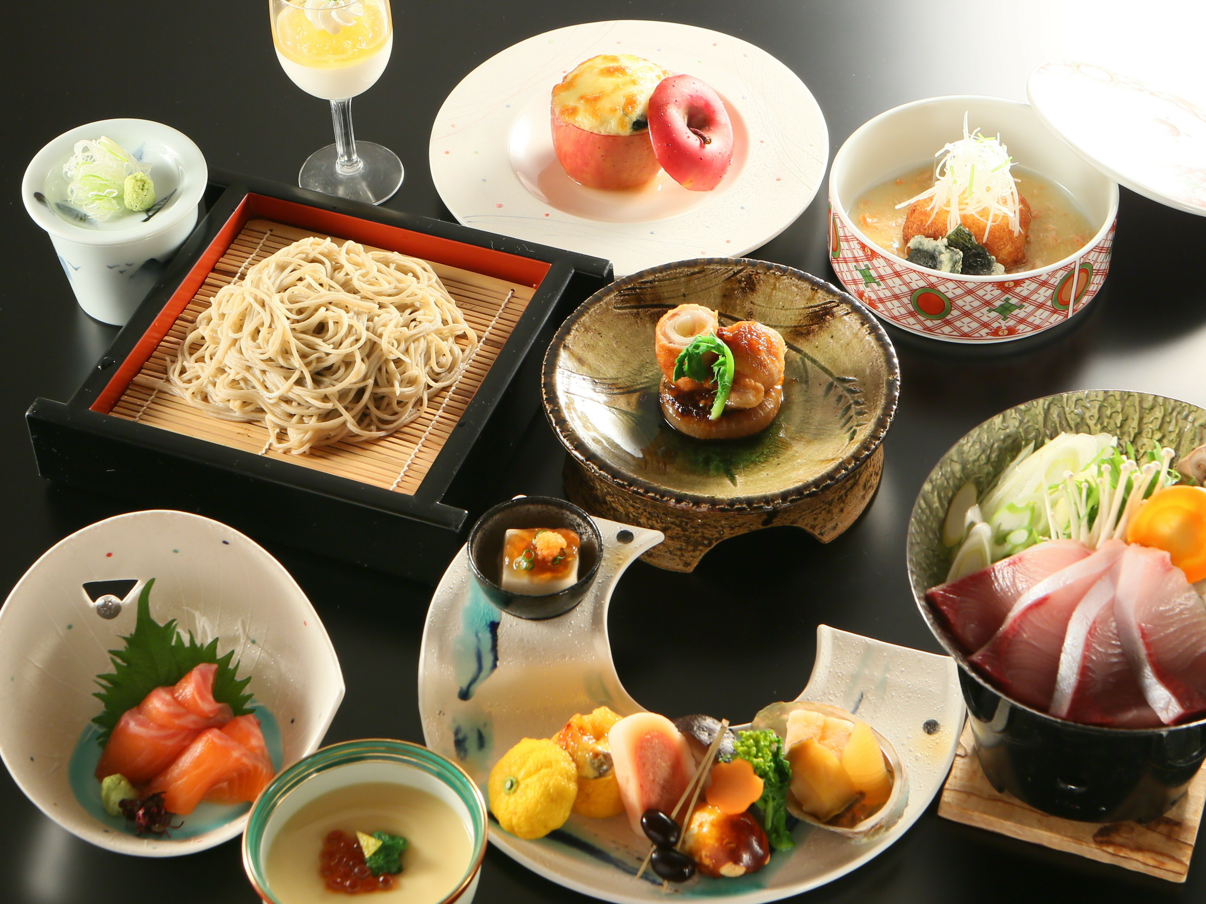 Blue and clear Lake Aoki. It is set in a forest of larch and mountain cherry trees at an altitude of 822m, and has plenty of play spots including fishing, MTB and canoeing. In winter, you can enjoy smelt fishing and skiing, snowboarding and cross-country skiing at the nearby ski slopes. A variety of food and making experience classes are also held.