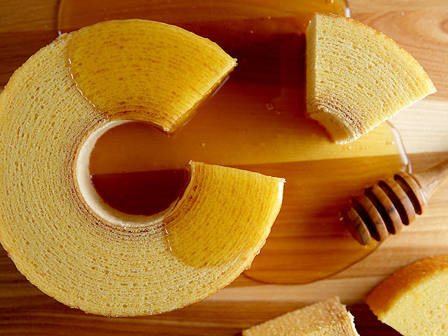看板商品「岐阜県産はちみつバウムクーヘン」。ふんわりと焼き上げたバウムクーヘンにはちみつがたっぷり