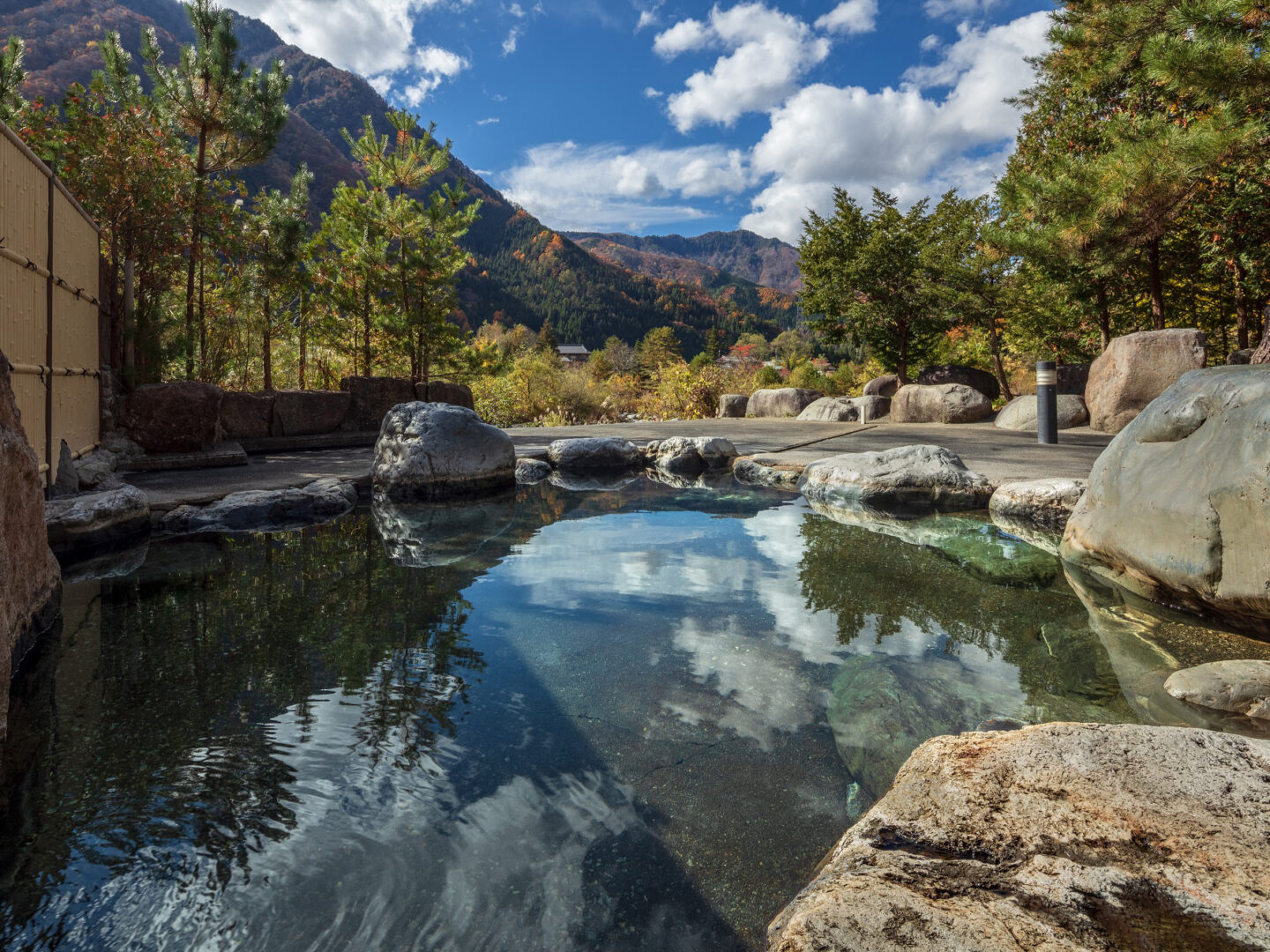 A hot spring facility located in Swan, Gujo. Large open-air baths with a stunning view of 1000m in altitude are popular when you can enjoy the views of the four seasons. The 10 private rooms open-air baths are well received by families and couples who want to enjoy private time.