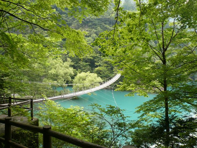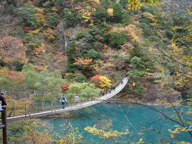Oigawa Rail Road Sento Station → Oigawa Rail Road Bus 40 minutes for Sumatakyo Onsen, bus stop: Get off the entrance of Sumatakyo, 30 minutes on foot to dream bridge