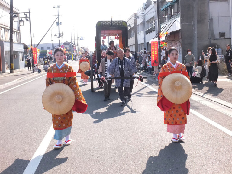 The festival of Hibushi, which continues from the Edo period, is famous since ancient times as the Arakamikoshi, and the bearer carries the Kamikoshi, which weighs about one ton, and cruises the city.