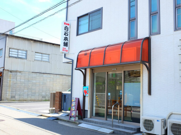 創業明治16年(1883)。松山の郷土菓子・醤油餅の名店。ショウガの香る醤油味など各120円に、こし餡入り150円もある。季節限定のりんまんや柏餅なども人気。
