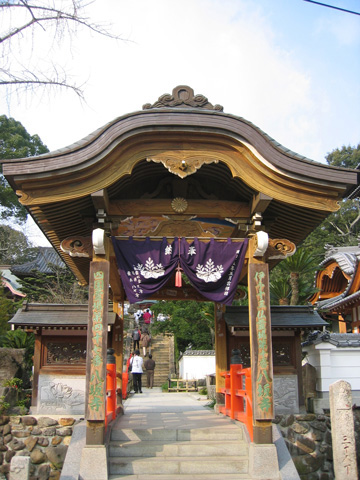 聖武天皇の勅願所で、行基が刻んだ阿弥陀如来像が本尊。寺宝は慶安3年(1650)に家次という町人が納めたという銅板製の納札で八十八ヵ所で最古のものとか。大師堂横にはキリシタン灯籠が立つ。