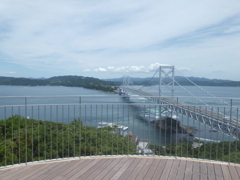 大鳴門橋の車道下に設けられた全長450mの海上遊歩道。途中にガラス板がはめ込まれた休憩所が4カ所あり、450m先の展望室まで太平洋、瀬戸内海の雄大な景色を見ながら海上45mの空中散歩が楽しめる。また、先端にある大きな眺望ガラス床からは45m下に迫力満点の、鳴門海峡の激しい潮流や渦潮を見ることができる。