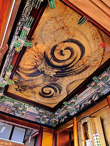 The Bodhi-ji temple of Irie Chōhachi, a plasterer who was described as a master of stucco [whitewater] finery, is located at Jōji Temple. Its main hall has become the Changpachi Memorial Hall, and about 20 works remain, including "Happo Gura [Nira] Minoryu", which is painted on the ceiling, which is famous for being a masterpiece of Nagahachi. The precinct houses the tomb and bust of Changpachi and a memorial. It takes 20 minutes. It is designated as Shizuoka Prefecture Designated Tangible Cultural Property.