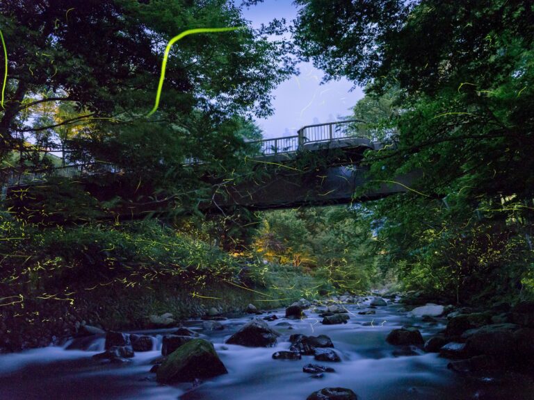 A love spot on the "yō-dō", which was once maintained as a walking path by villagers and travelers to the communal bathhouse. The "Otohashi" and "Meihashi", which span near the confluence of the Motogawa River and Nekoshikawa, together are called "Encounter Bridge". It is said that when a man who crossed the bridge and a woman who crossed the bridge meet, they can be happy. In June, a festival will be held, and Genjihital, who grew up in Amagi, will fly fantastically over the valley of Amagi. You can also enjoy autumn leaves from mid-November to early December.