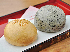 A specialty store of manju, standing in front of the dokumonyu. We recommend sesame buns with bamboo charcoal and dust kneaded into the skin. The texture of the moist mochi is contracted to be a habit. The service that you can sample one whole is also nice. In addition to the classic brown sugar buns, the company also sells seasonal buns such as wormwood and cherry blossoms.