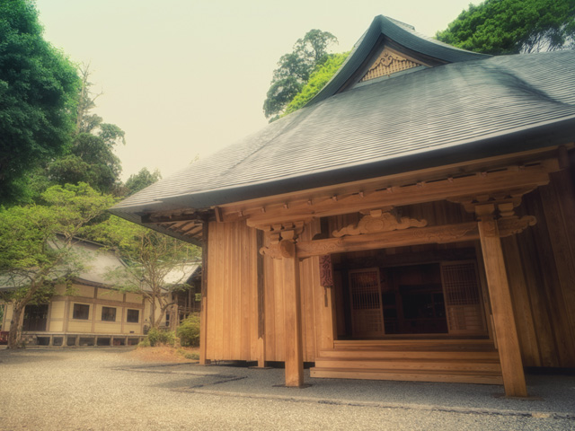The ancient temple founded by Nikko Jyojin, a high brother of the Nichiren Saint, in the year of Yongin 6 (1298). In the precinct, a giant cedar, which is about 7m around the trunk of Nikko Jinjin's hand-planted tree, is extant after more than 700 years of wind clouds and disasters, and has a historical temple-like drift.