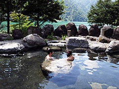An open-air bath with a beautiful emerald green lake surface overlooking the lake of Hakusui (Oshirakawa Dam Lake). It is also the source of Shirakawa-go Hirase Onsen. The baths surrounded by mountains on all sides are for men and women, but there are few enclosures to block the view, so you can enjoy the wild atmosphere. Because it is at the entrance to Hakusan, it is often used by climbers.