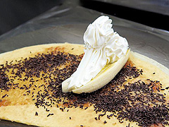 A crepe shop open only for the winter season. The dough is homemade and has a sticky texture. You can enjoy it with abundant toppings, which is popular with overseas customers. It boasts homemade custard and plenty of rum-pickled rum raisins. From 400 yen.