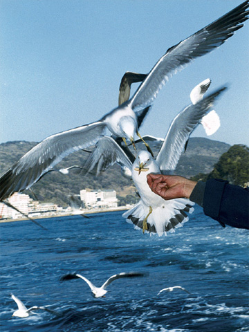 갈매기의 광경은 승객의 손에서 음식을 제공하며 해외 관광객들에게도 인기가 있습니다.