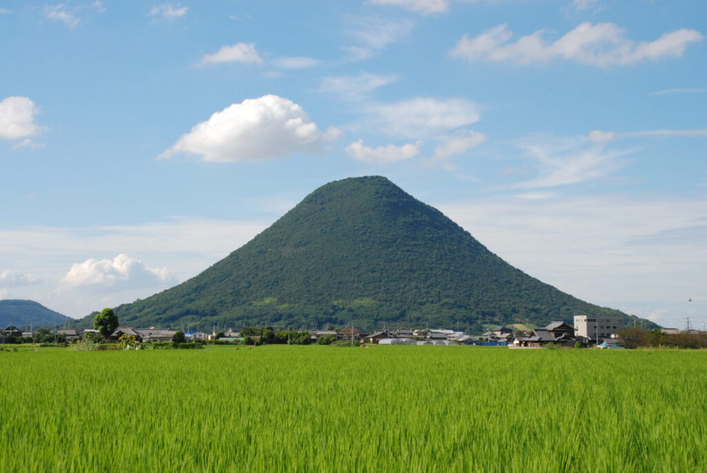 Marugame과 Sakaide의 도시에 걸쳐있는 "Iinoyama" 는 "Sanuki Fuji" 라고도 알려진 원뿔 모양의 아름다운 산입니다. 고도 422m 에서 신일본의 100 메이산 산맥과 시코쿠의 100 메이산 산맥으로 지정되었습니다.