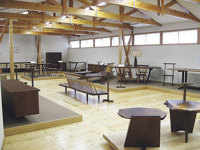 世界で唯一ナカシマの家具製作ライセンスを持つ桜製作所敷地内にある、20世紀を代表する家具デザイナー、ジョージ ナカシマの記念館。記念館2階の展示室には、ナカシマ本人が手がけた椅子やテーブル、キャビネットなどの家具類を展示。1階にはギャラリーショップや喫茶コーナーがあり、実際にナカシマ家具に座ったり触ったりして素晴らしさを体験できる。購入にも対応してくれる。