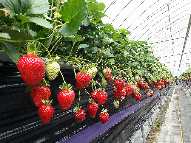 温暖な気候の香川県高松市にあるイチゴ狩り農園。甘くておいしい香川県オリジナル品種の「さぬきひめ」と、全国的に人気の高い「よつぼし」、「かおり野」を、是非とも味わいたい。また、イチゴ畑ではイチゴをふんだんに使用した「イチゴクレープ」「パフェ」「スムージー」などのスイーツも楽しめる。