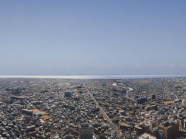 浜松のシンボル、アクトタワーの最上階にある、オークラアクトシティホテル浜松の展望回廊。回廊からは遠州灘や南アルプスなど地上185mからの風景を見渡せる。