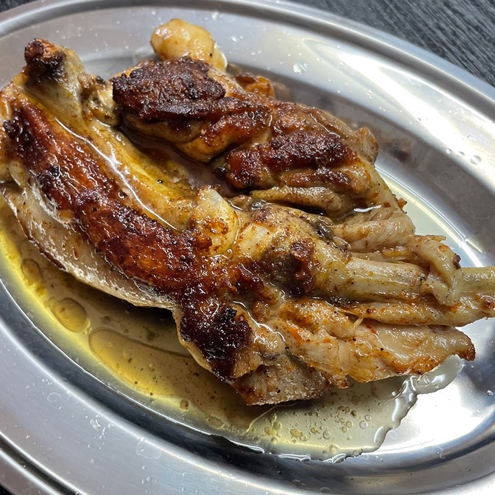 調理方法はいたってシンプル。ニンニク、こしょう等で味付けした骨付きのモモ肉を、オーブンなどで焼き上げるだけ。日本全国鳥料理は多々あれど・・・これほど豪快なものは珍しいのでは??