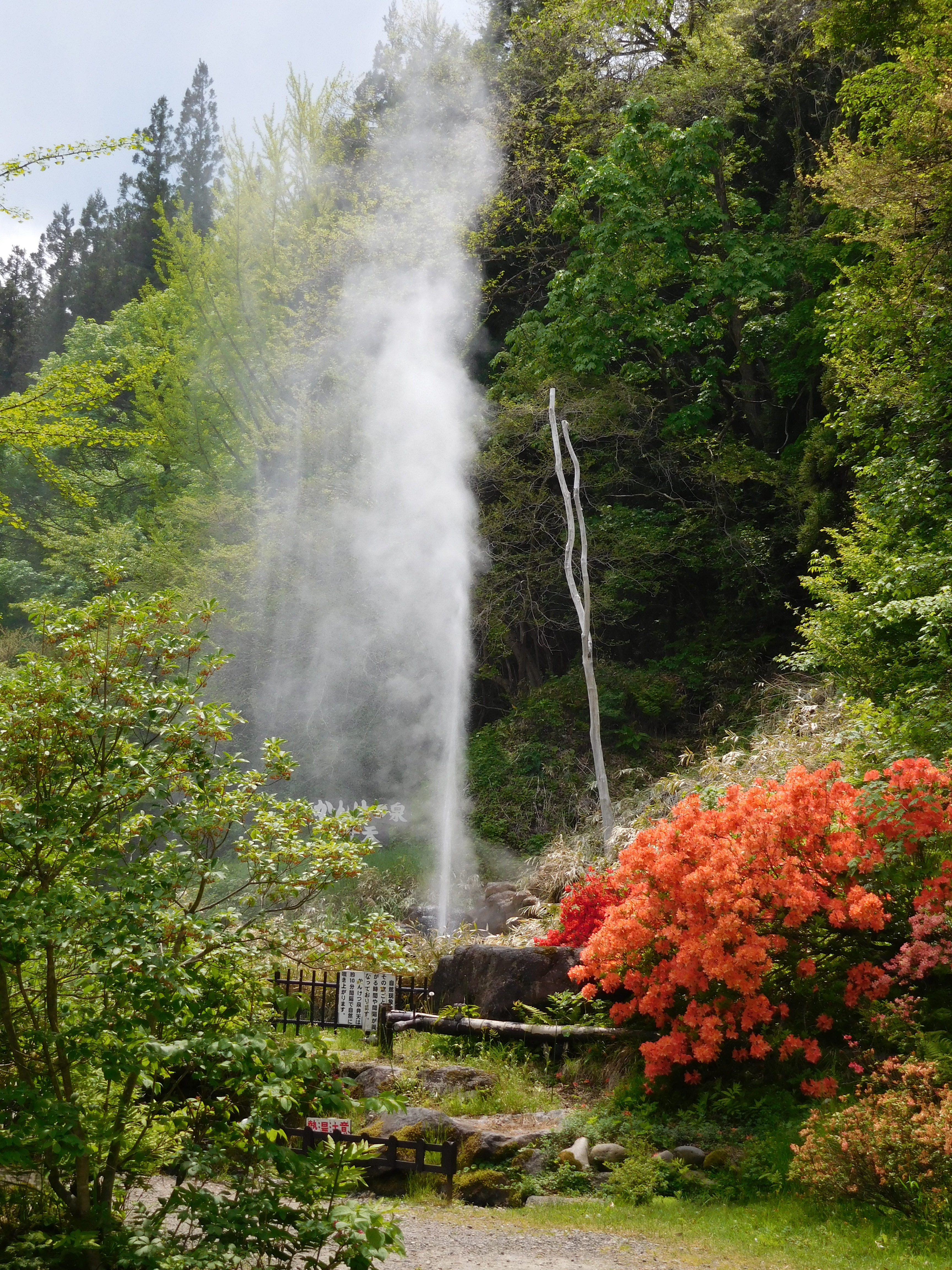 JR鳴子温泉駅→市営バス鬼首線で30分、バス停:間けつ泉前下車、徒歩3分