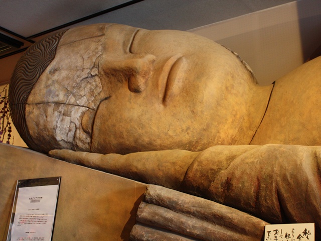 身丈13mの大涅槃仏を展示。仏さまの隣で寝ころんで天井画を鑑賞できる