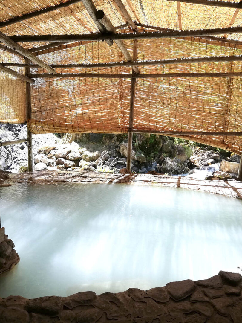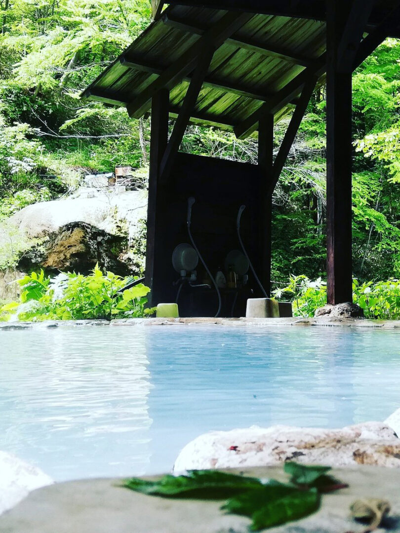 清流沿いの露天風呂は夏でも24℃と涼しい