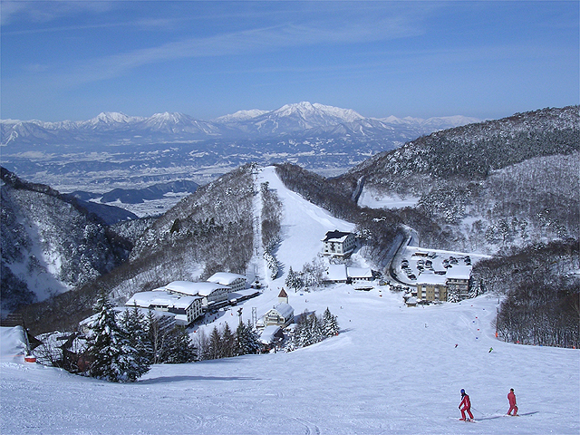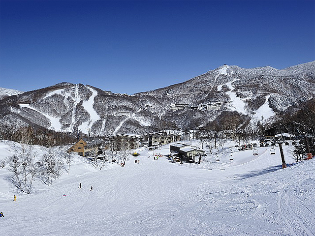 シンボルの時計台が立つサンバレーメインゲレンデ