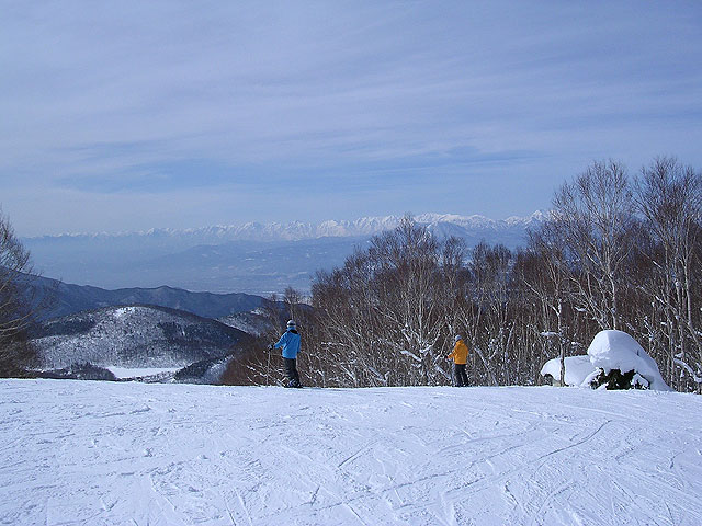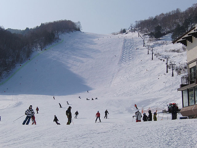 発哺ブナ平は横に広くなだらか。初めての人には人気のエリア