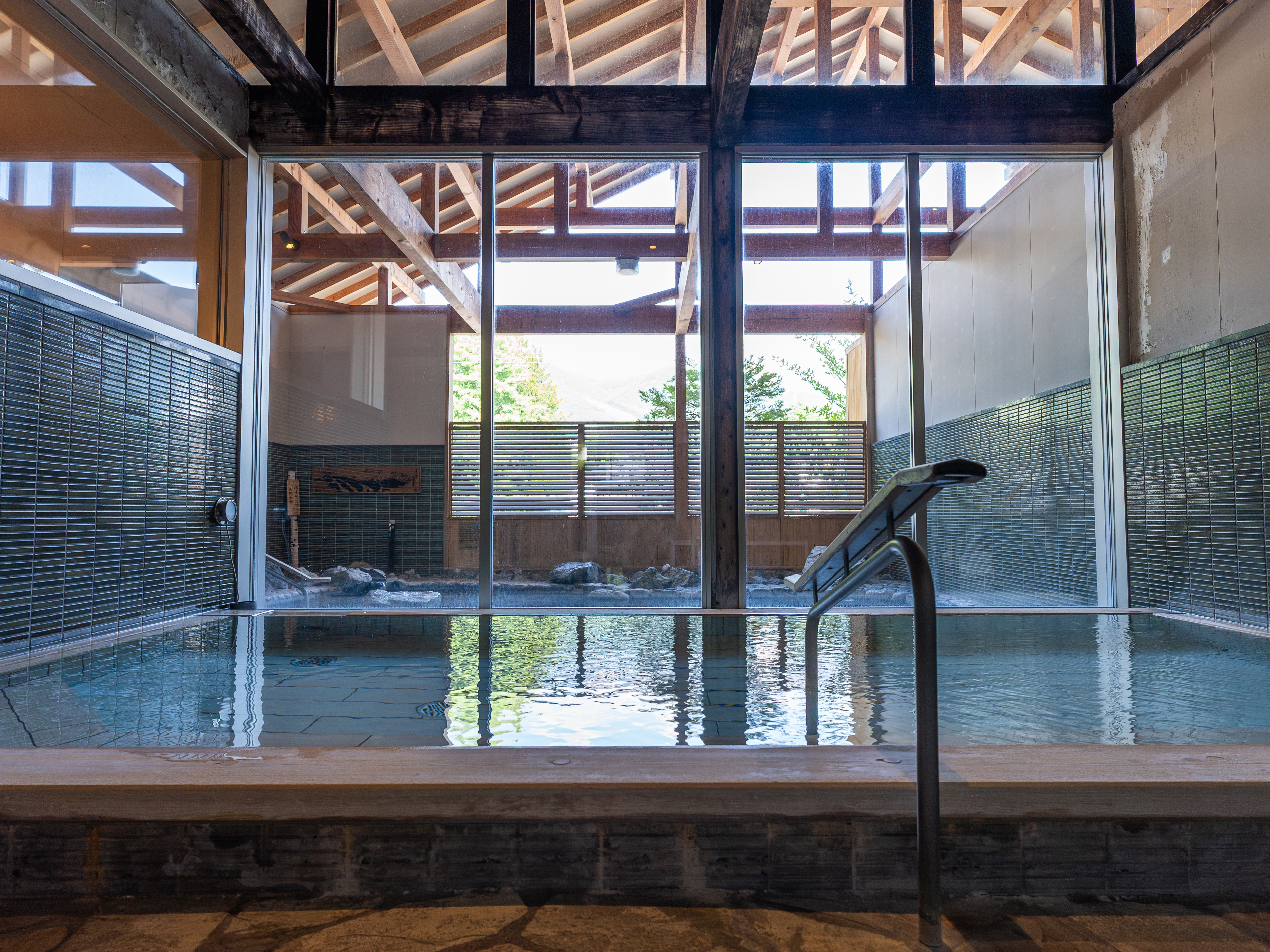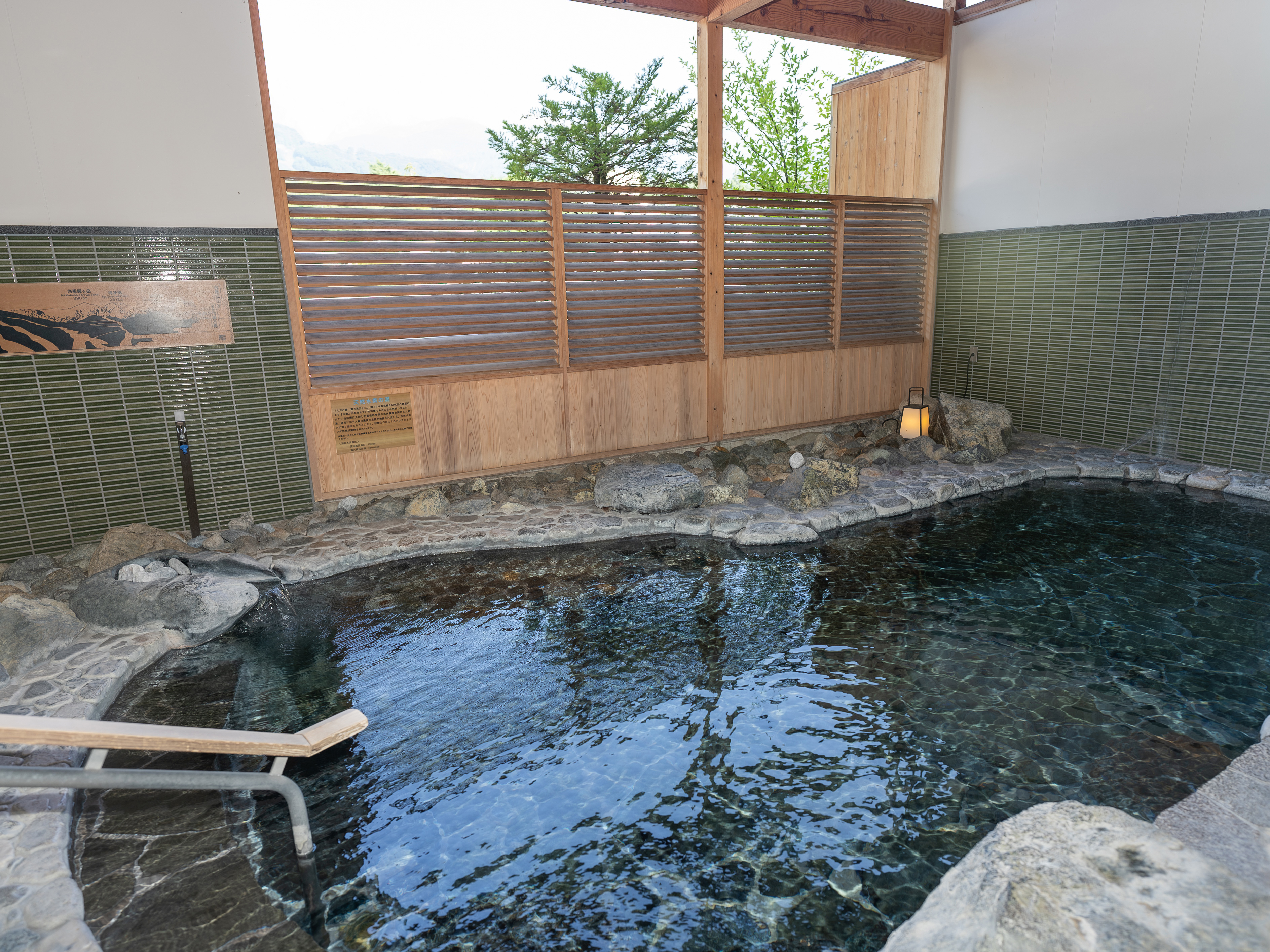 白馬の山々を眺められるゆったりとした天然水素の露天風呂