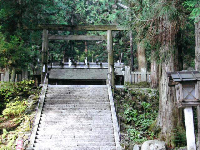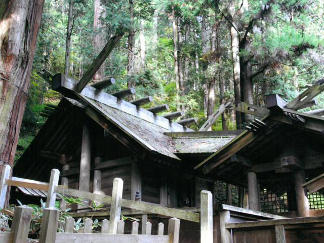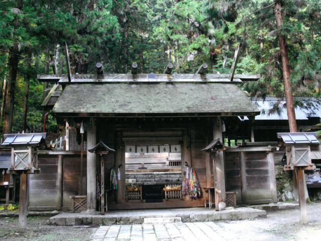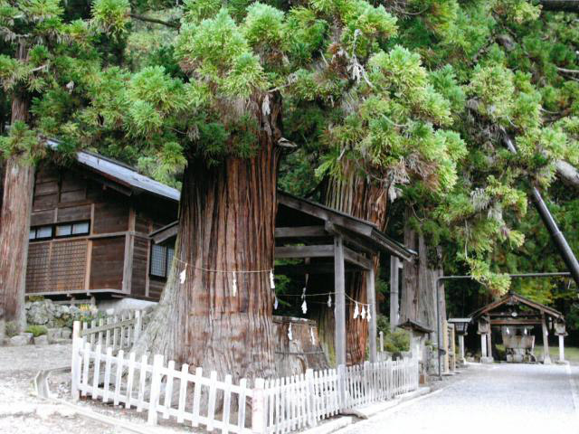 境内に檜やスギの天然木が繁る。石垣の覆屋[おおいや]の中には建武元年(1334)の棟札が残る間口1mほどの熊野、伊豆、白山、蔵王の4つの社殿(重要文化財)が並ぶ(拝観は要連絡)。いずれも一間社流造檜皮葺き[いっけんしゃながれづくりひわだぶき]の屋根が特徴的な長野県最古の鎌倉建築とされる。永享11年(1439)の銘のある鰐口も残され、木曽谷の文化の中心だったことがうかがえる。