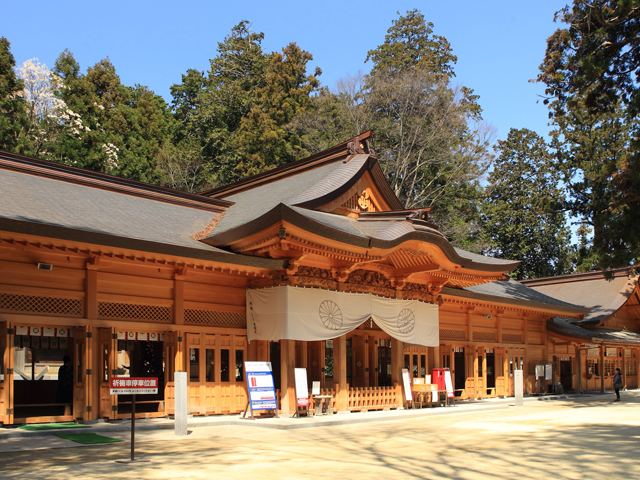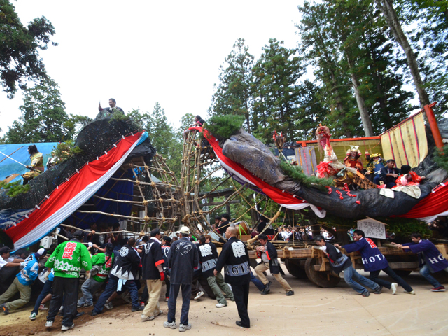 境内に檜やスギの天然木が繁る。石垣の覆屋[おおいや]の中には建武元年(1334)の棟札が残る間口1mほどの熊野、伊豆、白山、蔵王の4つの社殿(重要文化財)が並ぶ(拝観は要連絡)。いずれも一間社流造檜皮葺き[いっけんしゃながれづくりひわだぶき]の屋根が特徴的な長野県最古の鎌倉建築とされる。永享11年(1439)の銘のある鰐口も残され、木曽谷の文化の中心だったことがうかがえる。