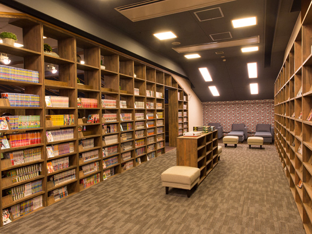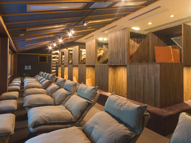 ひとり空間を満喫できるヒトシェルフなど、多彩な休憩スペースでくつろげる