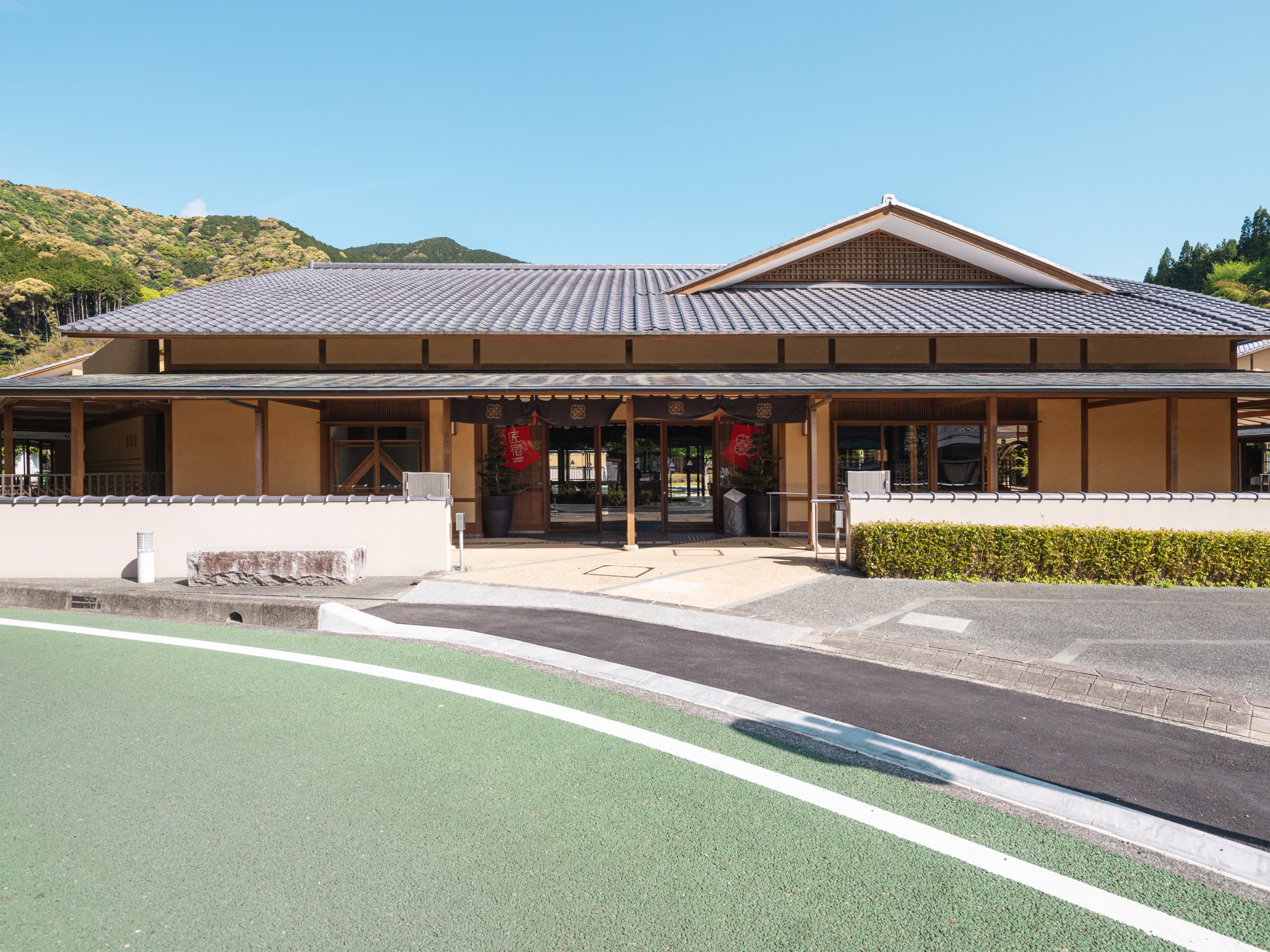 安倍川の支流の一つ、中河内川の源流沿いにある口坂本[くちさかもと]温泉の共同浴場。山々に囲まれた温泉郷で、泉質はナトリウム-炭酸水素塩泉。浴槽は30人ほどが入れる広い温泉浴場と庭園を望む露天風呂がある。食事の施設はないが、休憩室へ持ち込みは可能だ。