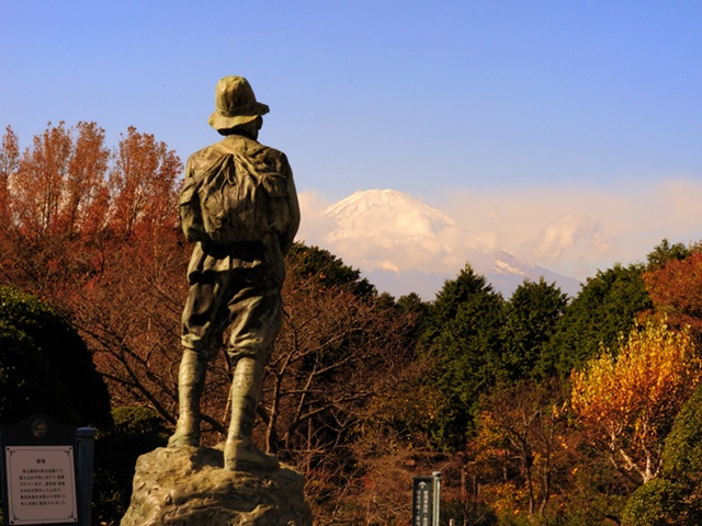 乙女峠への道の途中、高台に広がる公園で、白亜の仏舎利塔[ぶっしゃりとう]がひときわ目を引く。塔の前には金色の、なでかんのん像や狛犬が立つほか、富士を望む展望台や林間の遊歩道も整備されている。桜、ツツジの名所で、開花期は見事だ。所要1時間30分。