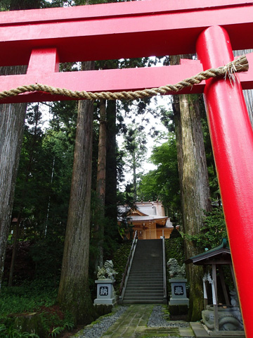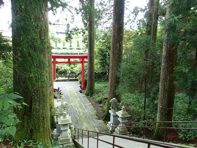 杉の巨木に覆われて神聖な雰囲気が漂う