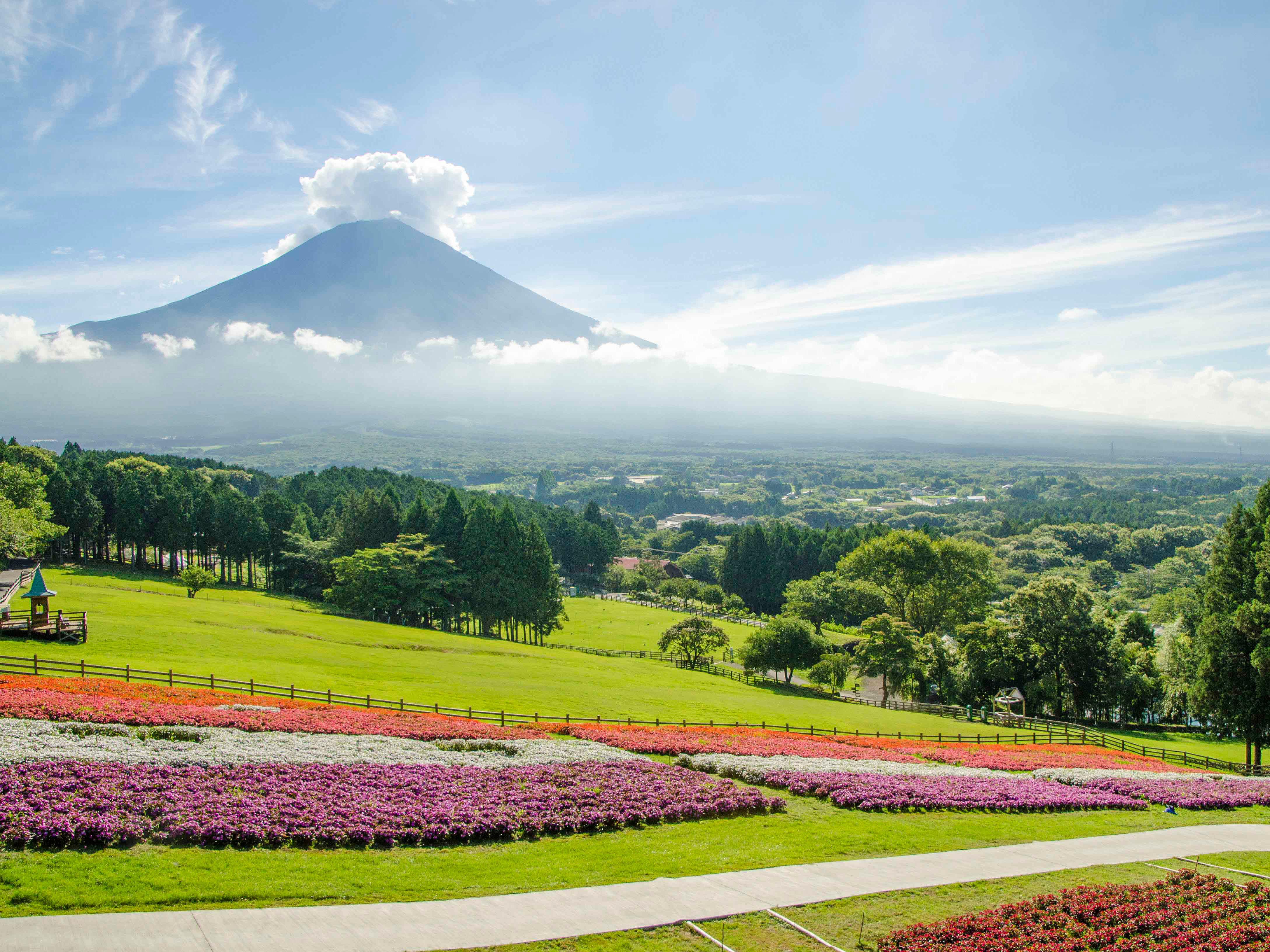 富士山テラスからの眺め。夏はサンパチェンスが楽しめる