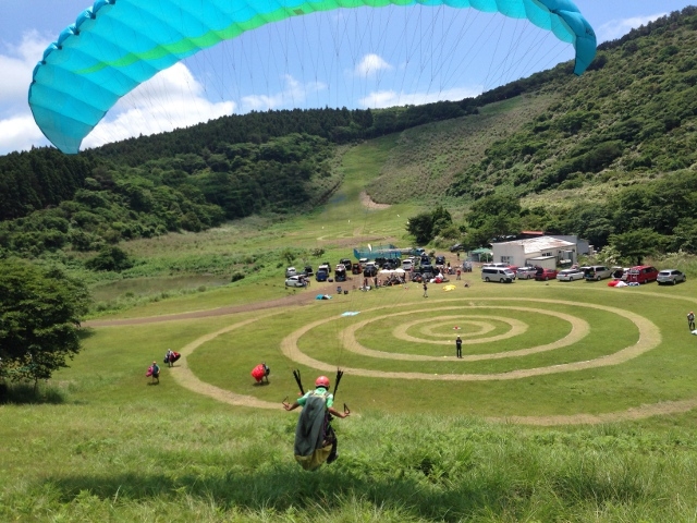 直径80m、総延長1100mの巨大ならせん道路。ぐるりとふた回りして、落差45mの急傾斜を登り下りする。昭和56年(1981)、国道414号の大滝・七滝温泉脇に完成。緑濃い山あいにひときわ目立つループラインは、七滝エリアの目印、名所となっている。