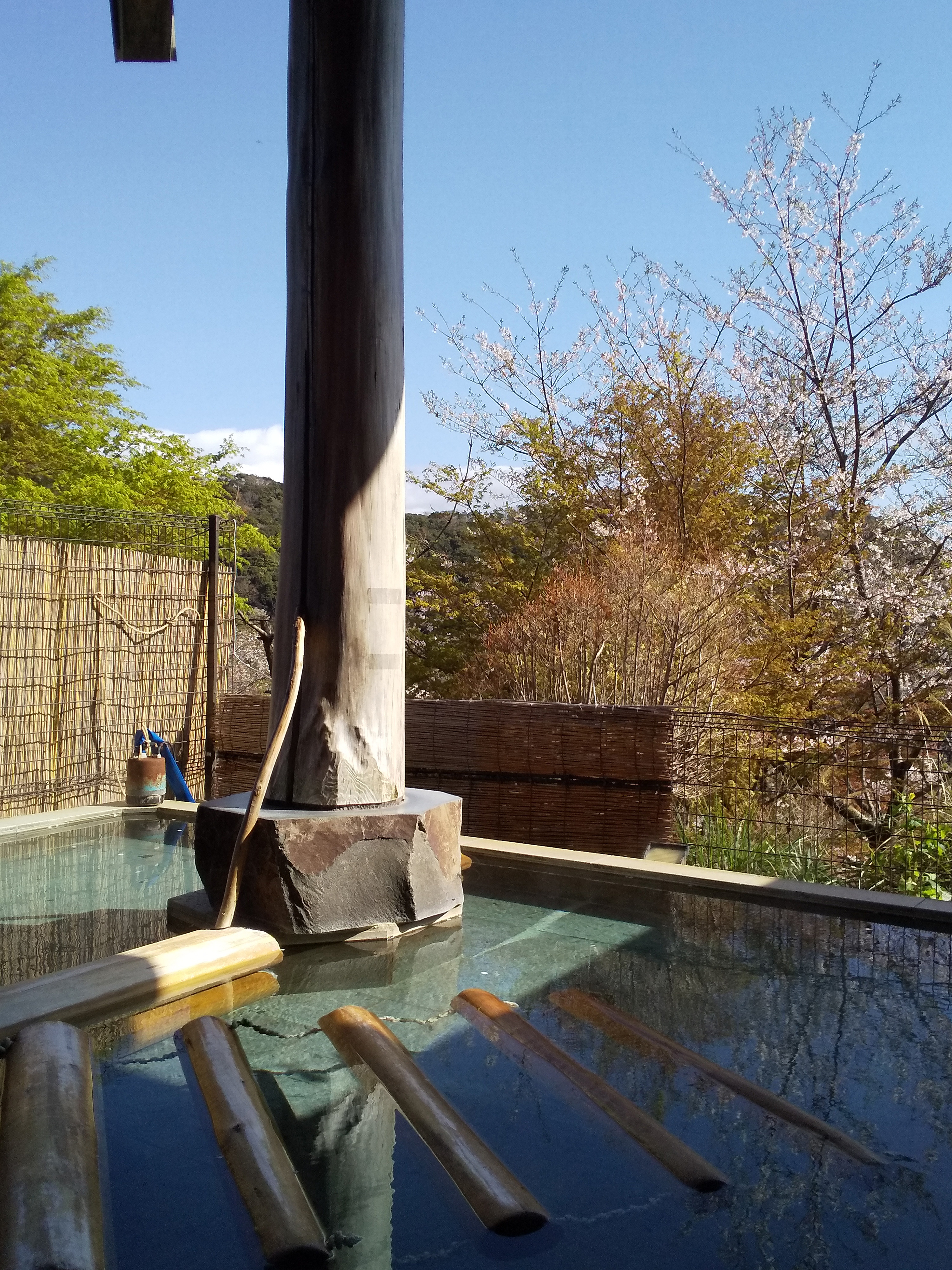 観音温泉は、深い緑に囲まれた、伊豆奥下田の山中にたたずむ秘湯の一軒宿。その観音温泉の、日帰り温泉施設が「観音プリンシプル」。施設名は、「美と健康」のプリンシプル(原理・原則)と「癒し」のプリンシプル(本質)を追求したことから名づけられた。男女それぞれに、源泉かけ流しの温度の異なる2つの湯船を持つ内湯と露天風呂があり、天城連山を望んで、自然と一体化した湯浴みが楽しめる。露天のバイブラバスや足湯も好評だ。泉質はpH9.5という強アルカリ泉。肌がツルツルになる美肌の湯としても知られる。