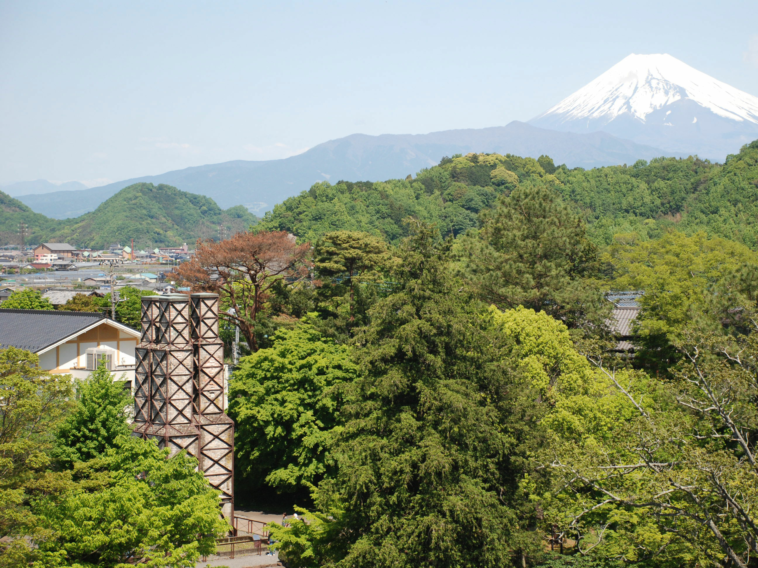 韮山反射炉に隣接する茶畑(高台)からは、富士山と韮山反射炉のダブル世界遺産を見ることができる