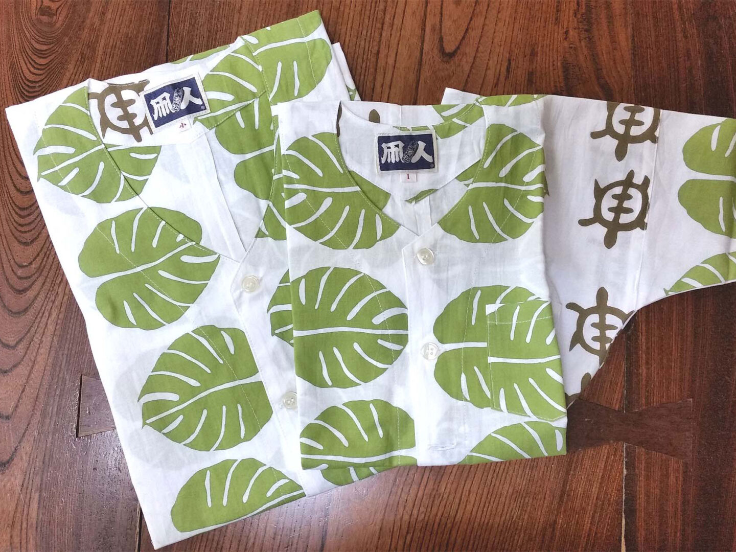 本染手拭い 鯉口シャツ ホヌ&モンステラ