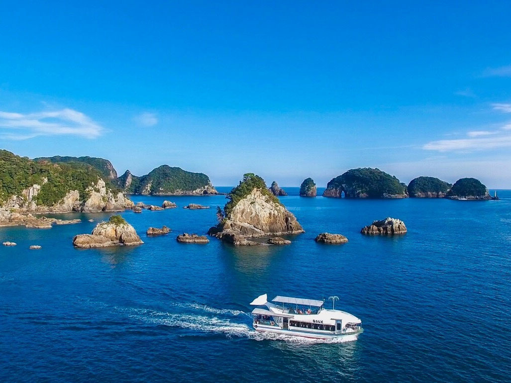 遊覧船でラクダ岩やライオン島など希礁奇岩をクルージング