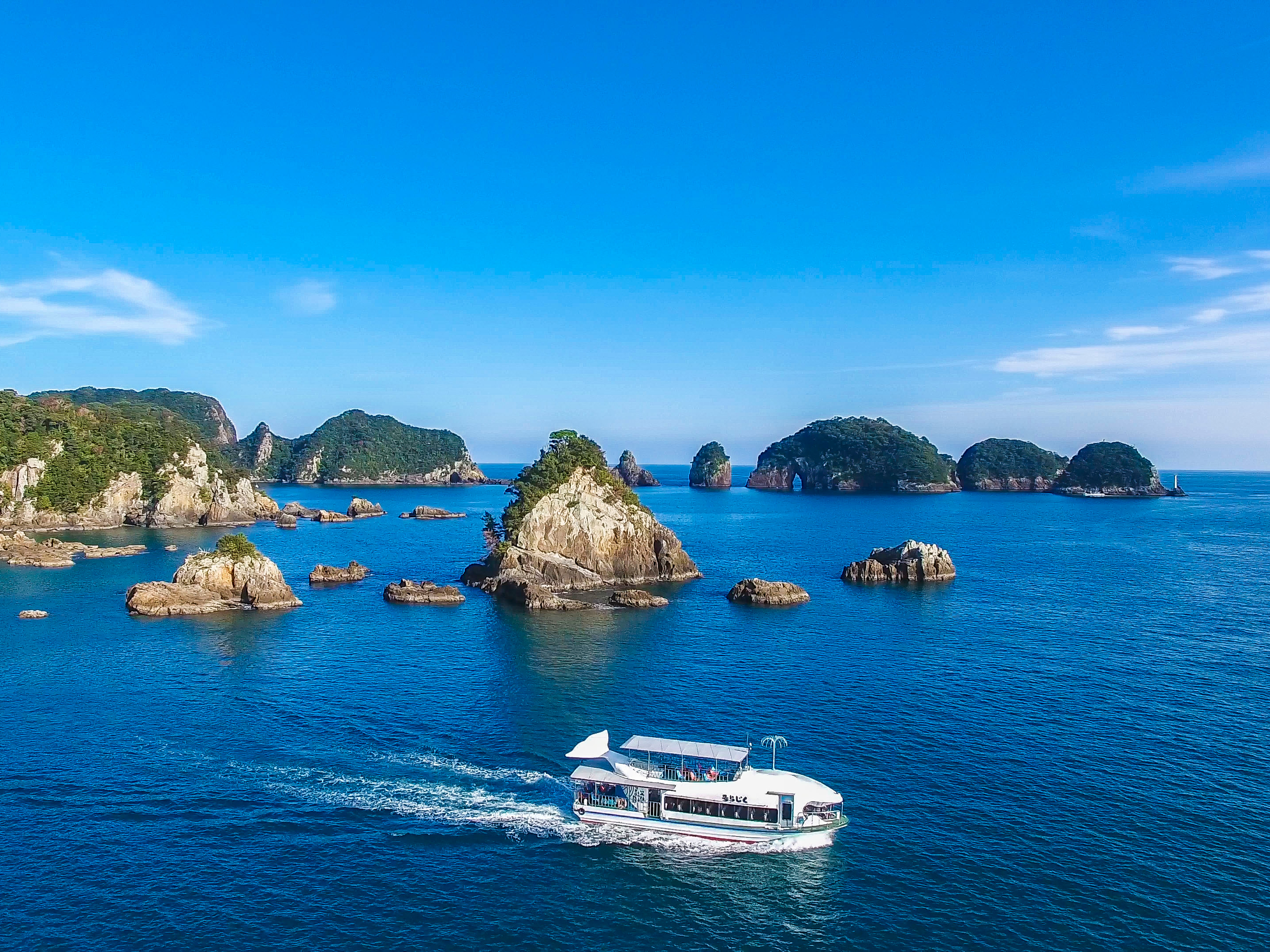 婦夫波[めおとなみ]とは、恋人岬と「陸の黒島」の間の狭い海峡に、東西から打ち寄せ合う波のこと。波が寄り添う姿からこう呼ばれ、波がぶつかりあって高く立つことから合掌波ともいわれる。また、恋人岬の斜面では、厳冬期を除いてブーゲンビリアの花も見られ、「陸の黒島」と少し沖に浮かぶ「沖の黒島」の美しい景観は、江須崎などとともに「すさみ八景」に選ばれている。