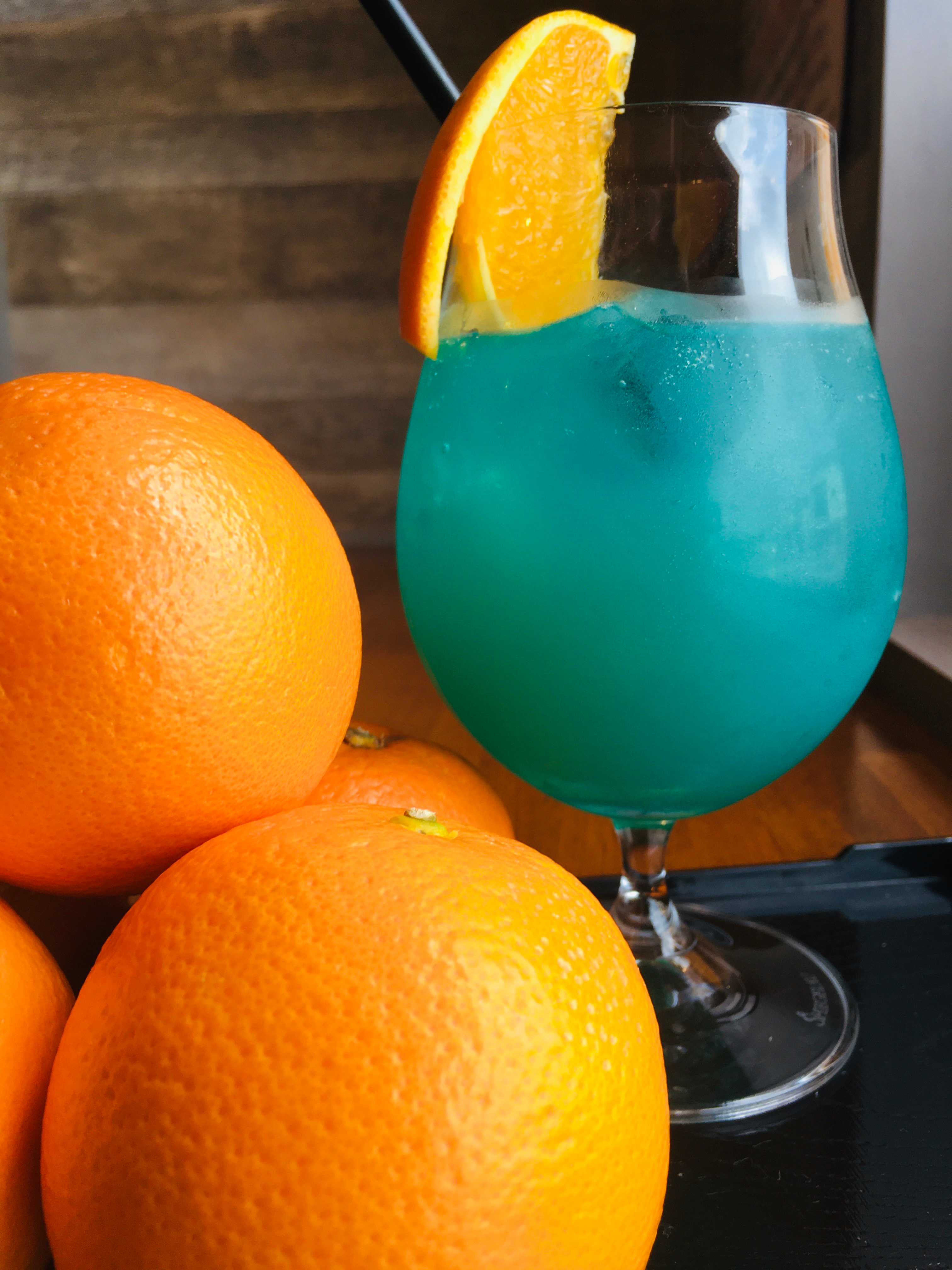 青いオレンジソーダ、日光の自然豊かな湖や滝の水色をイメージしたさわやかなドリンク