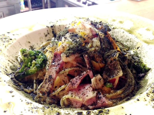 海苔ガーリックオイルのパスタ 木更津特産の江戸前海苔パウダーを贅沢に使ったパスタ