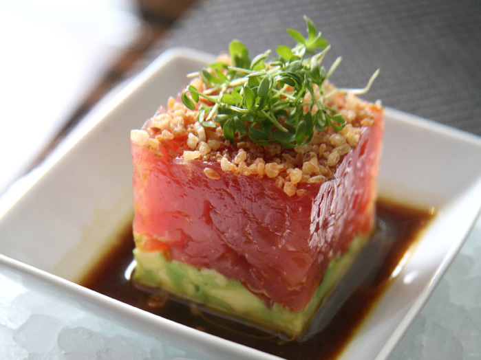 一番人気の前菜・マグロのタルタル アボカド、ライム醤油ドレッシング