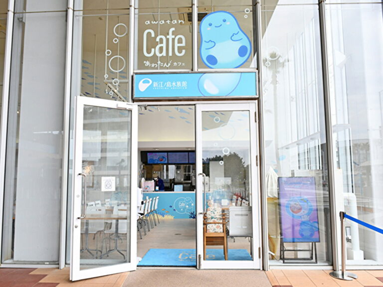 えのすい公式キャラクター「あわたん」の装飾やメニューがかわいいカフェ。水族館に入館しなくても利用できるのがうれしい。あわたんをモチーフにしたオリジナルメニューは、あわたんのキーホルダー付プレートメニューをはじめ、しらす丼など、大人から子どもまで選びやすいメニューが豊富。店内にはベンチシートや子ども用のイスもあるので、小さな子どもと一緒でもゆっくりと過ごせる。水族館を楽しんだ後に寄るのもおすすめだ。
