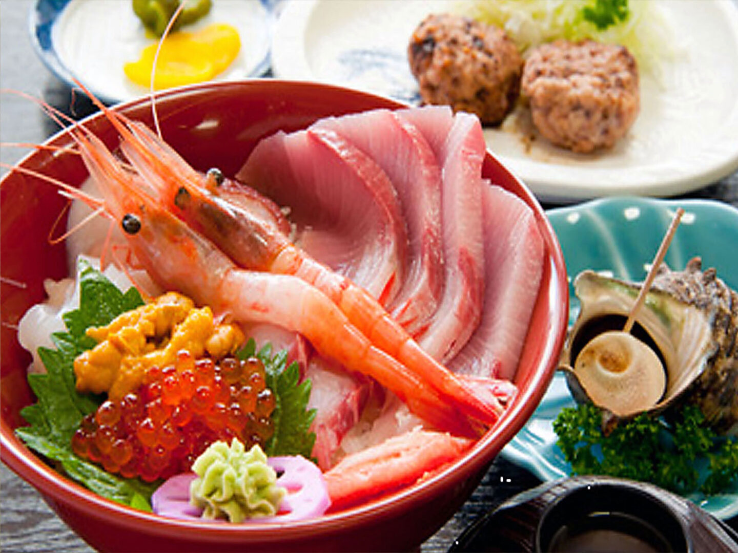 和食・料亭 | 越前がに | 東尋坊・雄島・三国湊エリア こだわりの食材をもっとも美味しい状態で提供 甘えび・がさえびと2種類の海鮮ネタの丼、珍しいもちえびの唐揚げや甘えびシュウマ