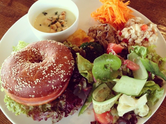 ランチA(サンドイッチとスープ・副菜、野菜たっぷりのワンプレートランチ)