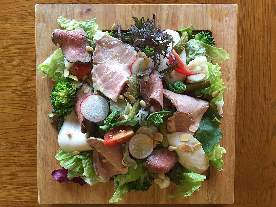 安曇野野菜と3種の肉サラダ(添加物を使わずにお店で手作りした自家製ハムやローストビーフ等)