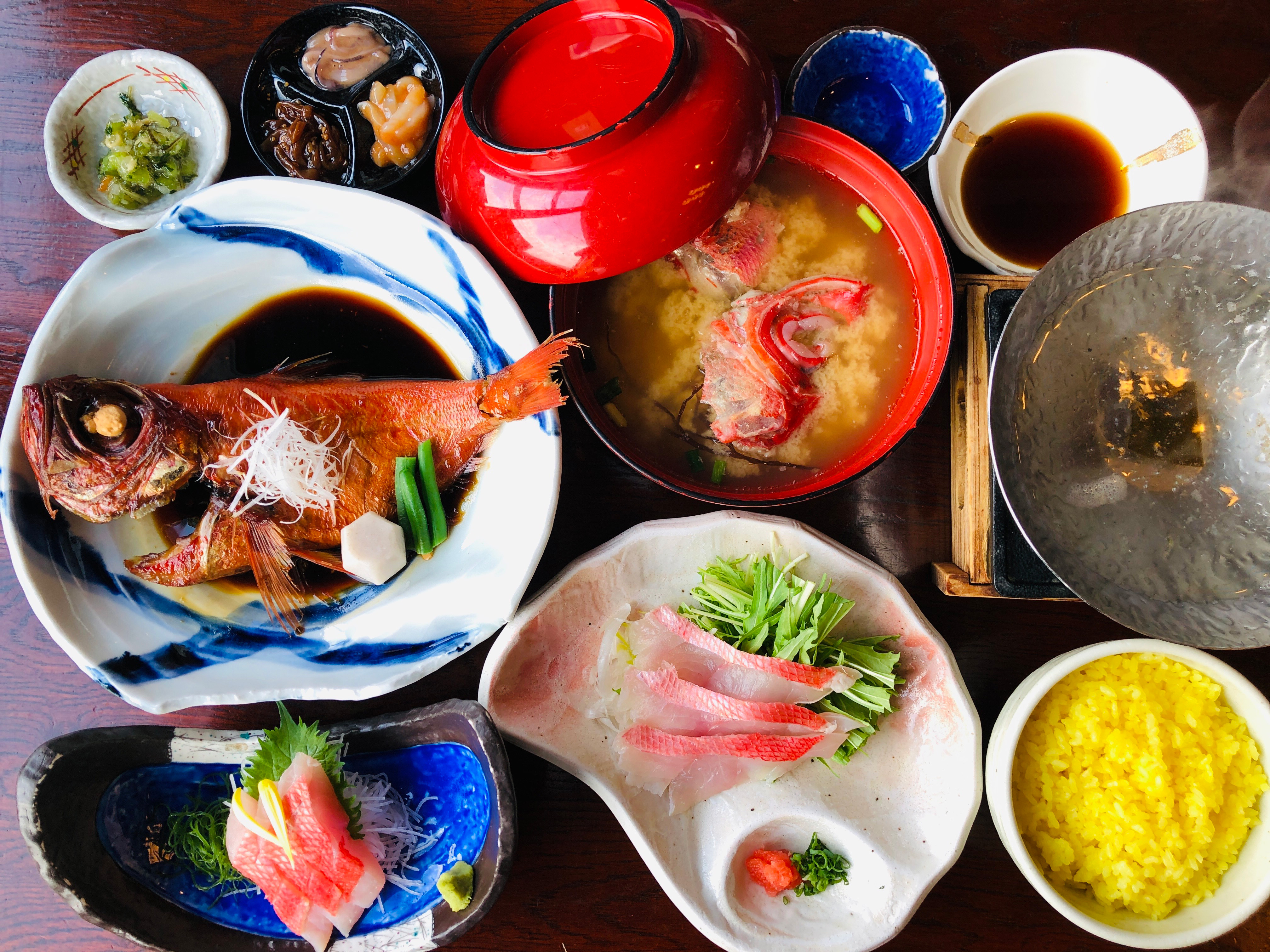 定置網から直接仕入れた地魚料理をメインとする磯料理店。海鮮丼2200円~は、その日の朝に水揚げされた地魚がたっぷり。他に、地魚天丼980円は、地魚の他に地元野菜の天ぷらがのったボリューム満点な一品。日替定食も各種ある。いずれもあら汁等みそ汁がつく。また、一品料理もその日の水揚げにより、カワハギ、ほうぼう、金目鯛、まんぼう等いろいろ楽しめる。予算にあわせたおまかせコースも人気。