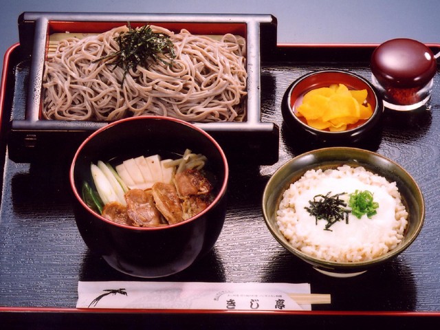 雑木林と茶畑に囲まれて立つ小さな山小屋風の店は、主人がセルフビルドで建てたもの。杉の板張りが清々しい店内では、そば粉だけで打った十割そばが味わえる。ざるそば750円、梅おろしそば1100円など、いずれも石臼で自家製粉し、山の湧き水で打ったこだわりの味。