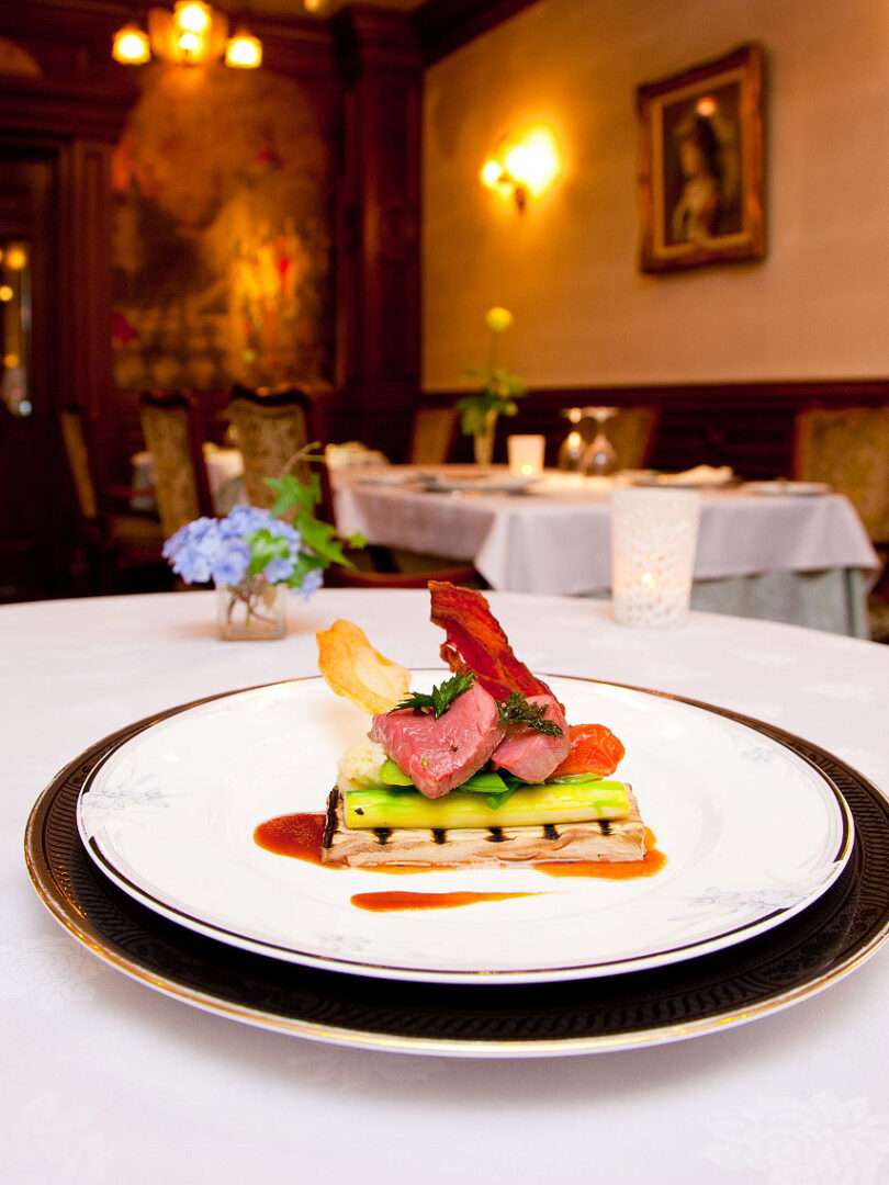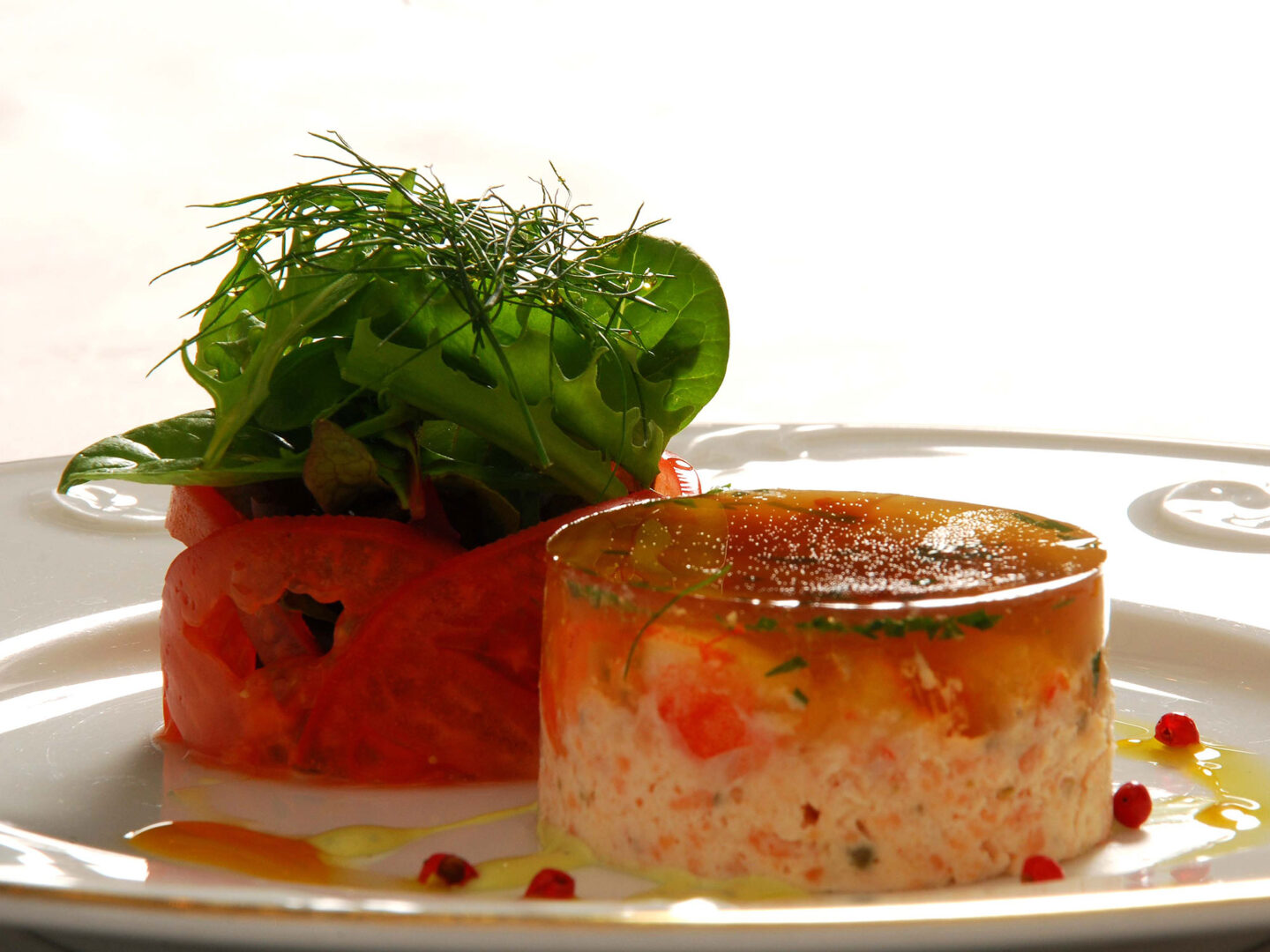 スモークサーモンのムース海老と帆立のゼリー寄せ