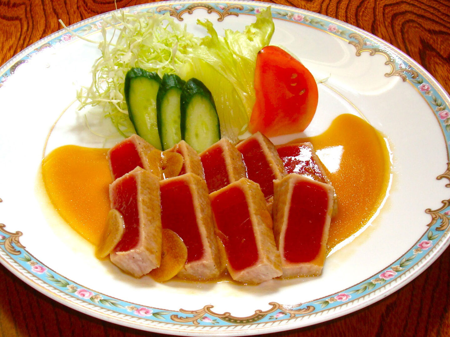 観光桟橋にほど近く、気軽に立ち寄りたい食事処。マグロとクジラを使った料理が自慢で、特製タレで味わうまぐろ丼1100円は、11時30分~14時のランチタイムには900円で食べられる。
